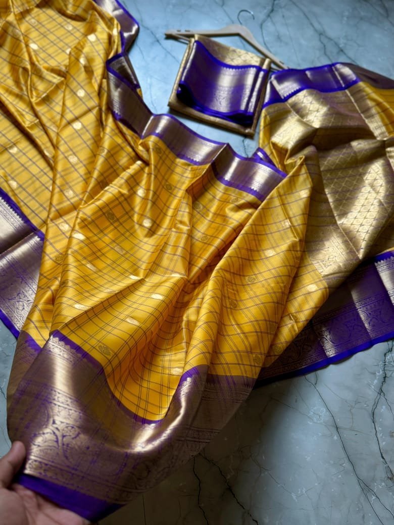 *❤️Banarasi Kanchi soft zari check buti silk soft saree with blouse 😍*