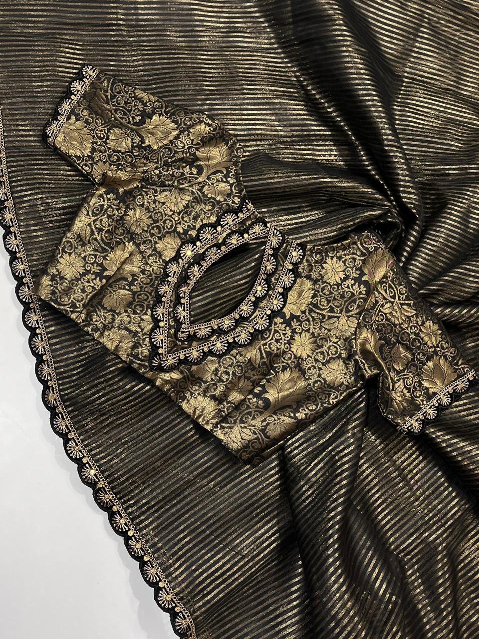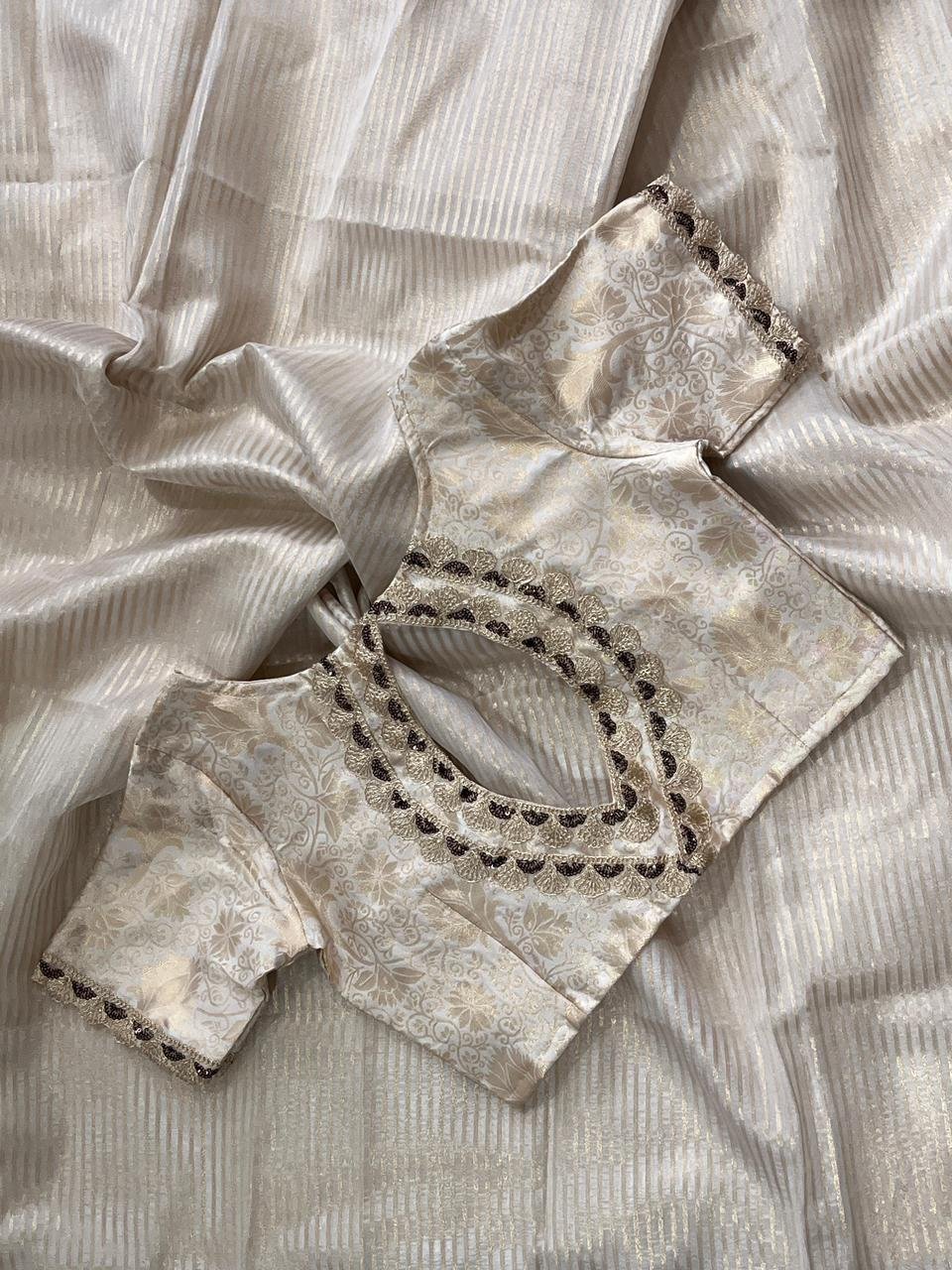 Banarasi Kora Organza saree with all over weaving stripes on saree