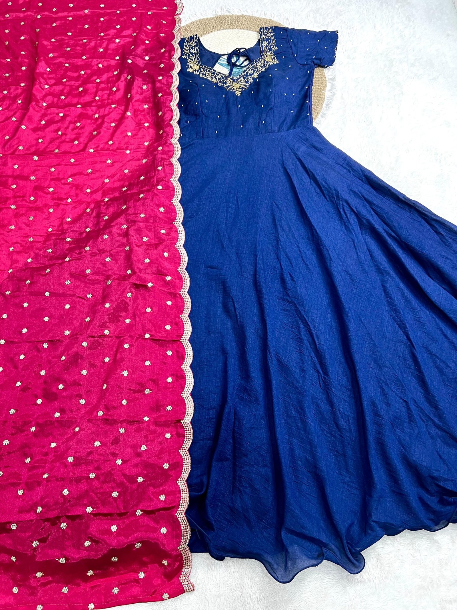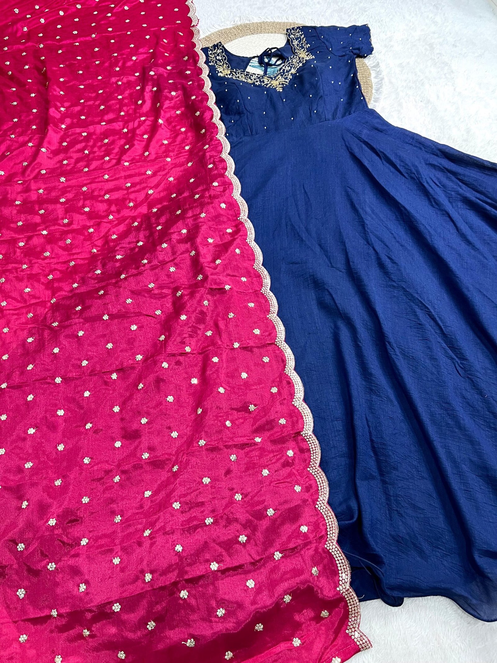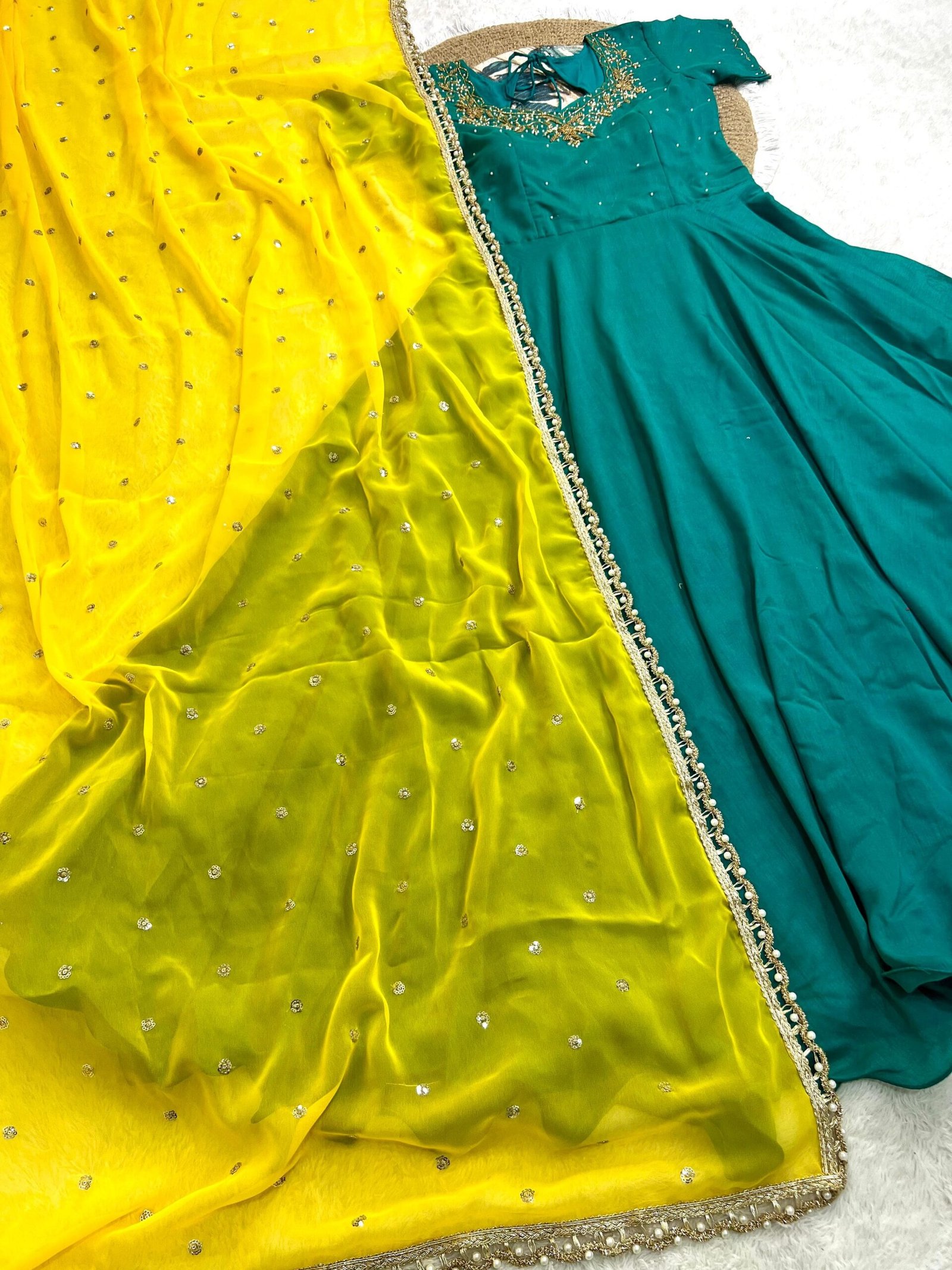 *Top Trending Pongal Collection. Beautiful Maggam Work Gown With Sequins Embroidery Dupatta. A touch of glamour and elegance to your look For Festive Season.*