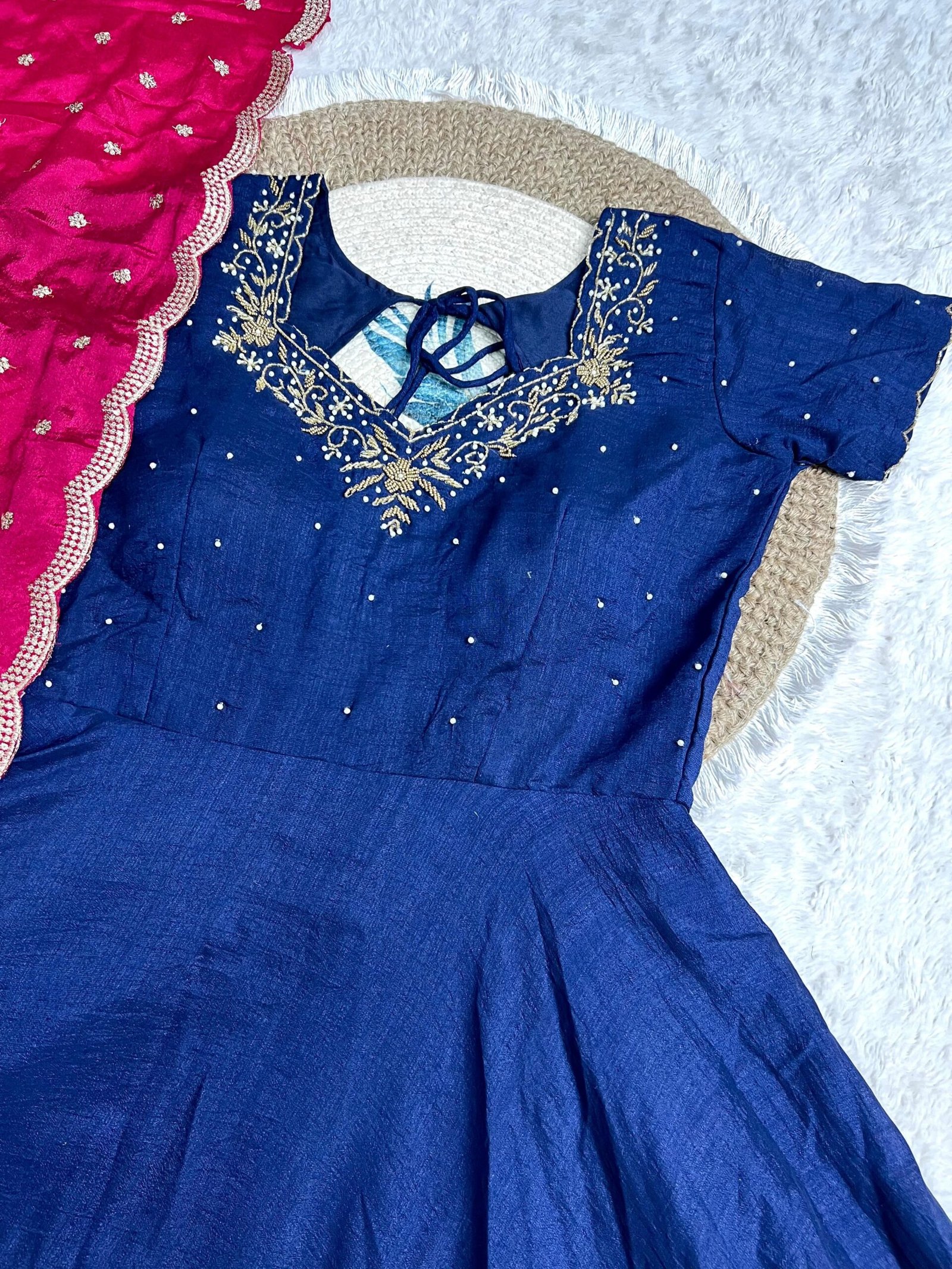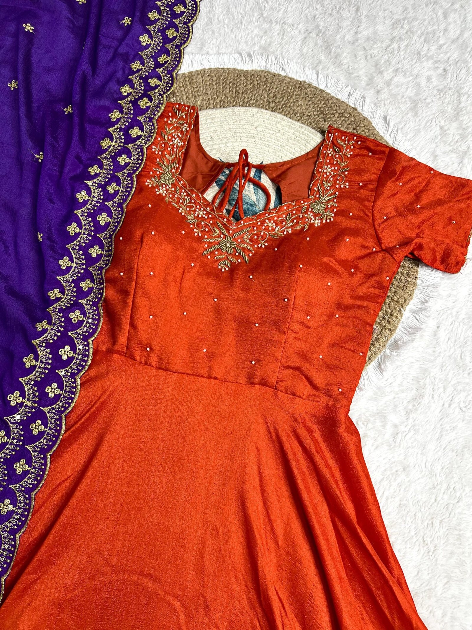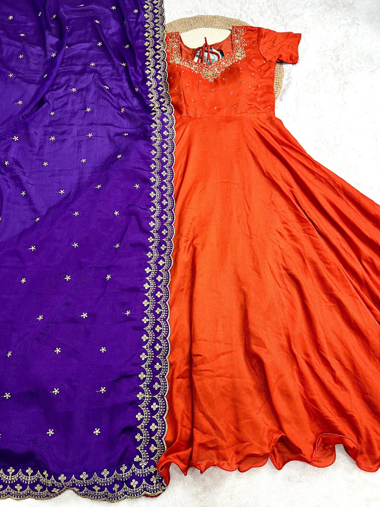*Top Trending Pongal Collection. Beautiful Maggam Work Gown With Sequins Embroidery Dupatta. A touch of glamour and elegance to your look For Festive Season.*
