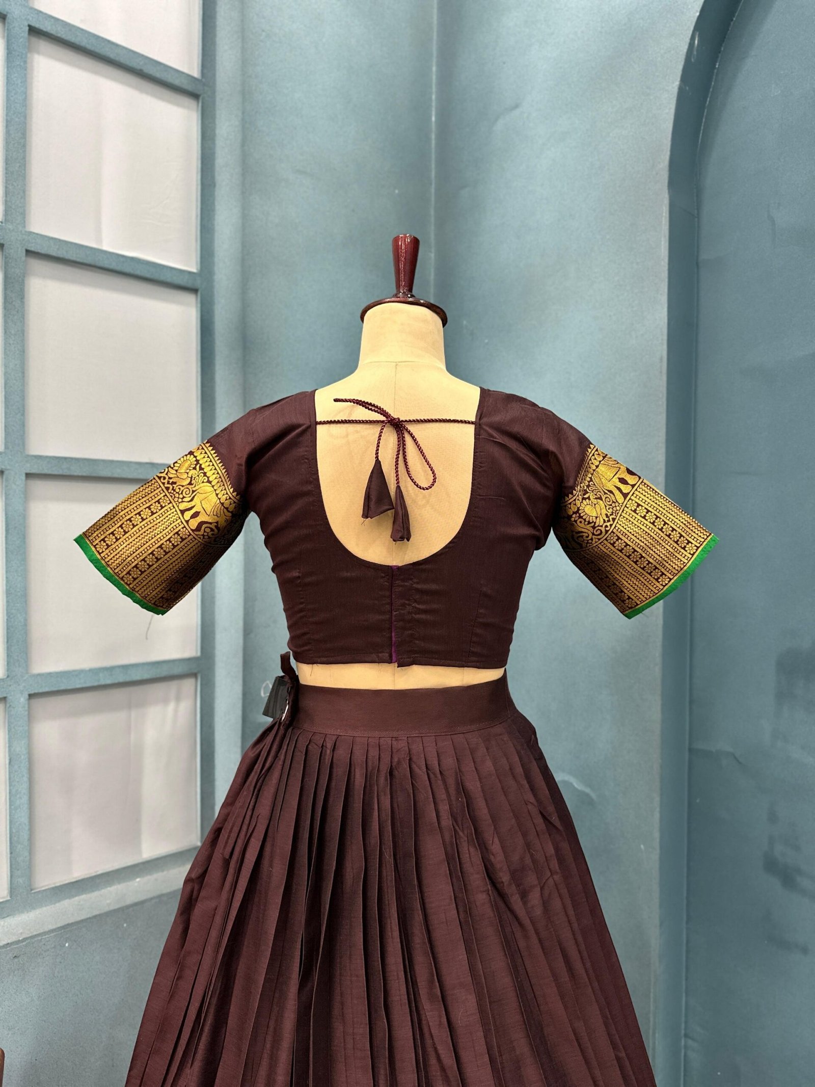 *Blouse* :- FULL Stiched pure Cotton with real zari Jaquard silk sleeve